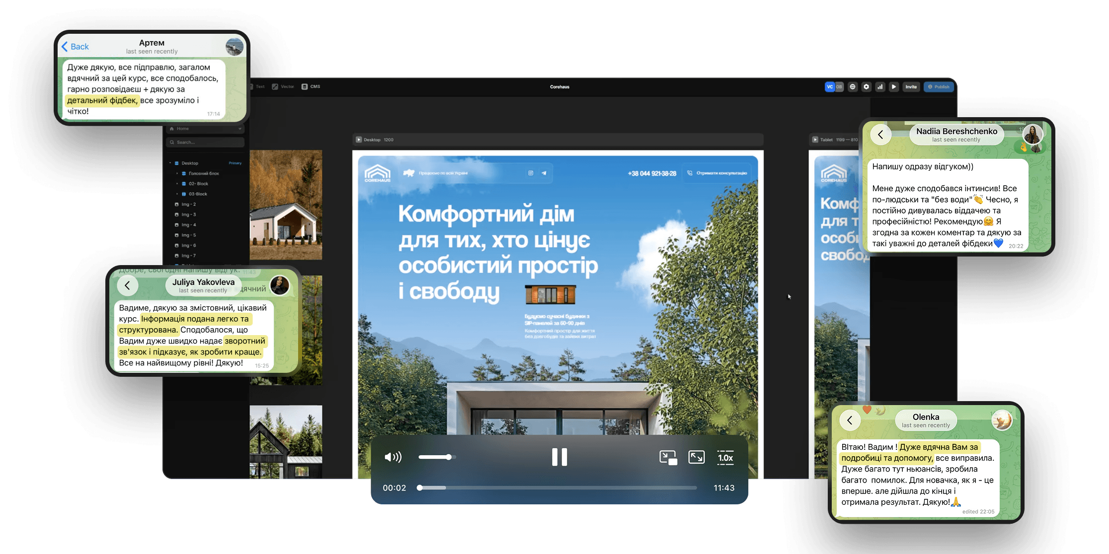 Відео-розбори домашнього завдання та підтримка по всім питанням у загальному закритому чаті.