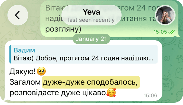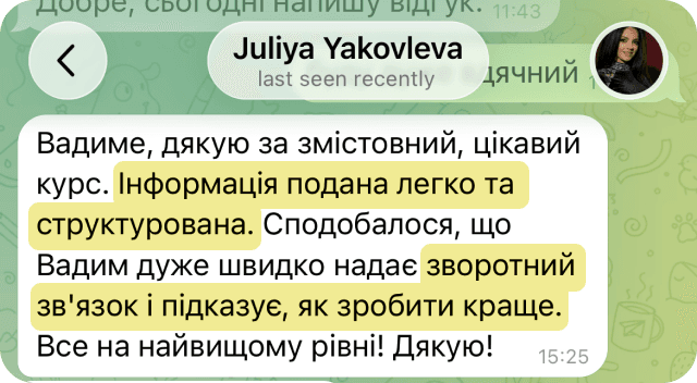 Доступ до уроків - 1 рік. Зможете повернутись і передивитись, коли вам буде зручно.