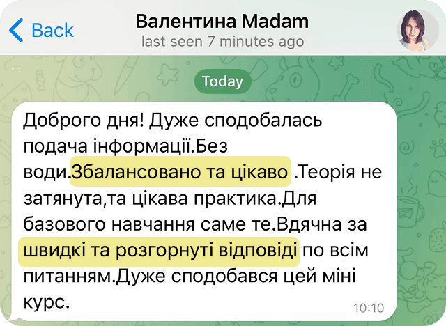 Якщо в процесі проходження уроків у вас виникнуть запитання, ви завжди зможете їх задати в Телеграм
